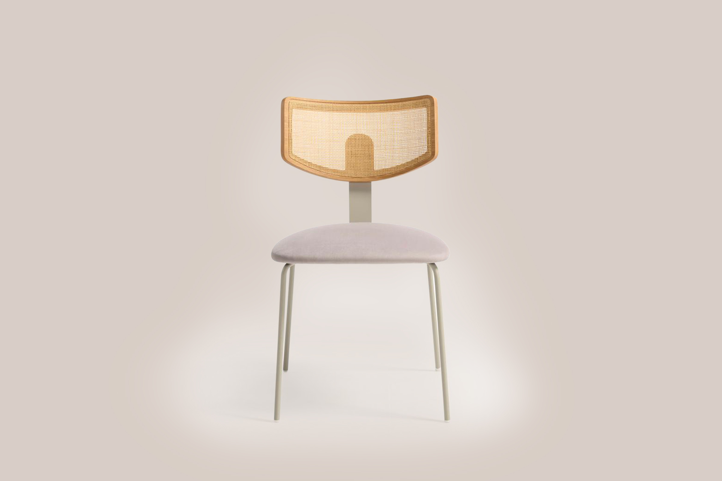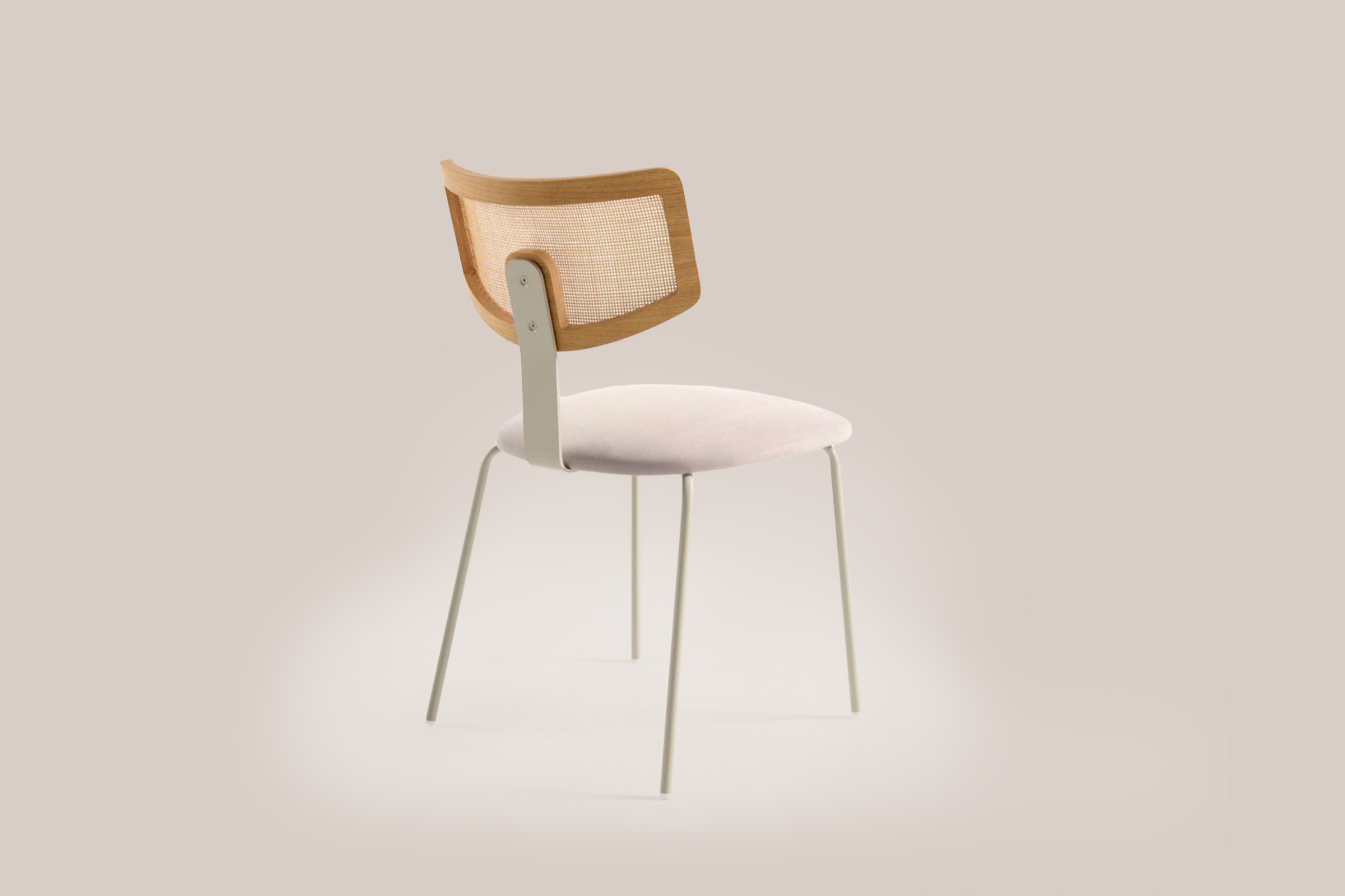 Cadira de menjador entapissada amb peus metàl·lics, pensada per aportar elegància i lleugeresa visual a l’espai. El seu disseny equilibrat encaixa amb naturalitat en ambients contemporanis, creant una atmosfera acollidora i sofisticada. Disponible en altres colors i acabats per adaptar-se al teu estil.