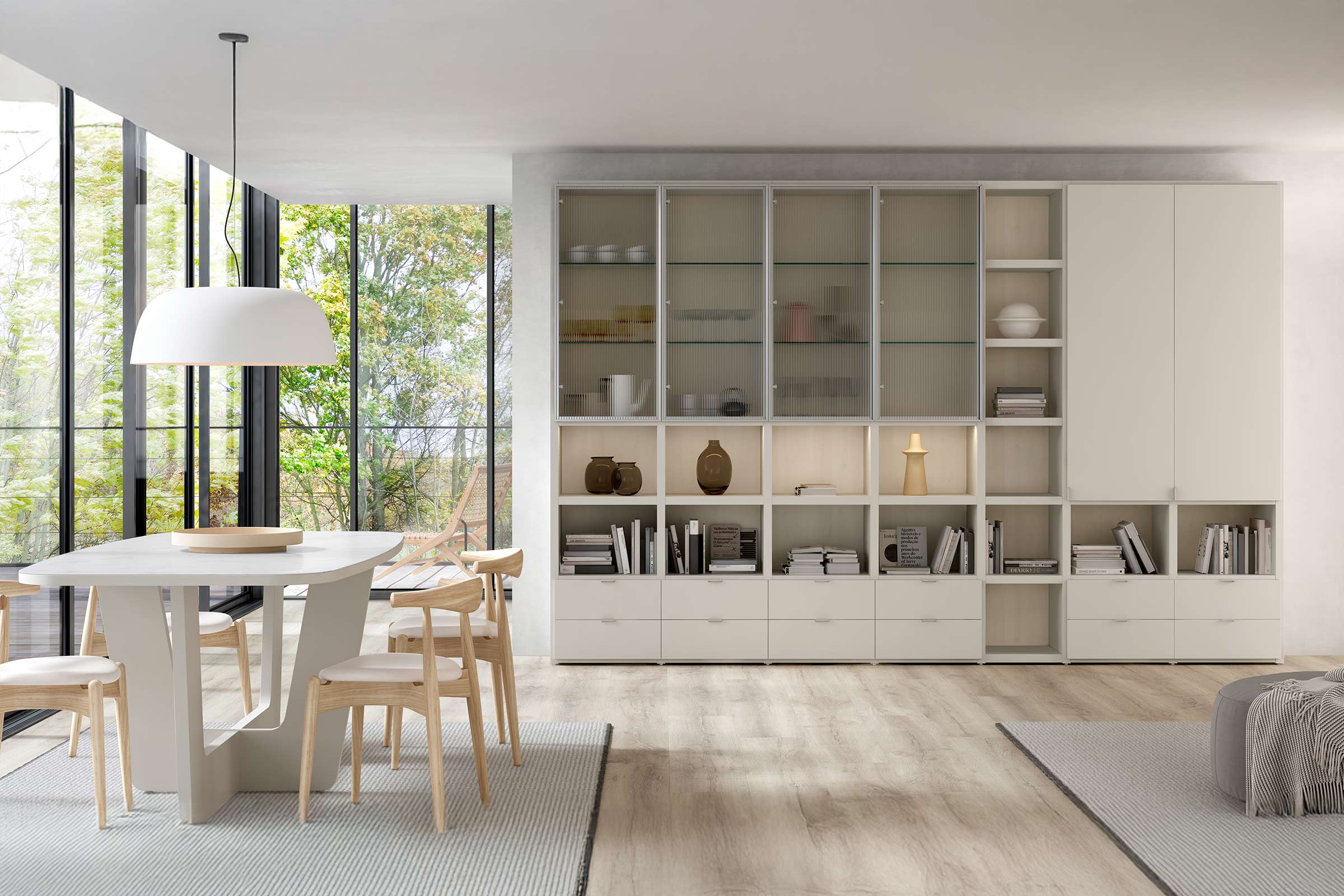 Disponible en una amplíssima varietat de colors, mides i acabats, aquesta composició s’adapta a qualsevol estil i necessitat, creant un espai de menjador únic i personalitzat.